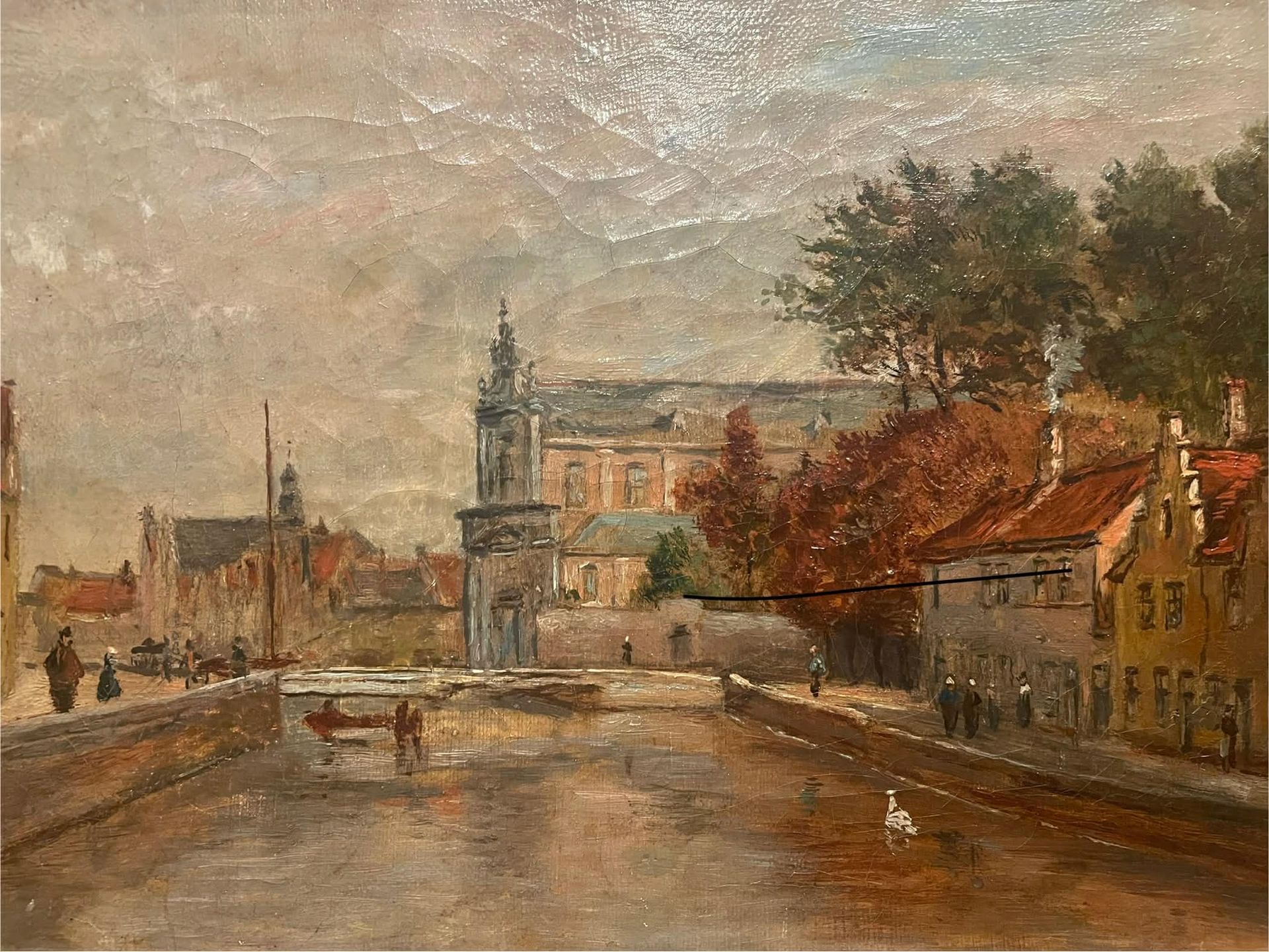 Dit is een intrigerend schilderij. Het is de Vlamingbrug. Hij studeerde aan de Brugse Kunstacademie bij Flori Van Acker. Hij stond bekend om zijn kopieerwerk van oude meesters zoals Hans Memling.